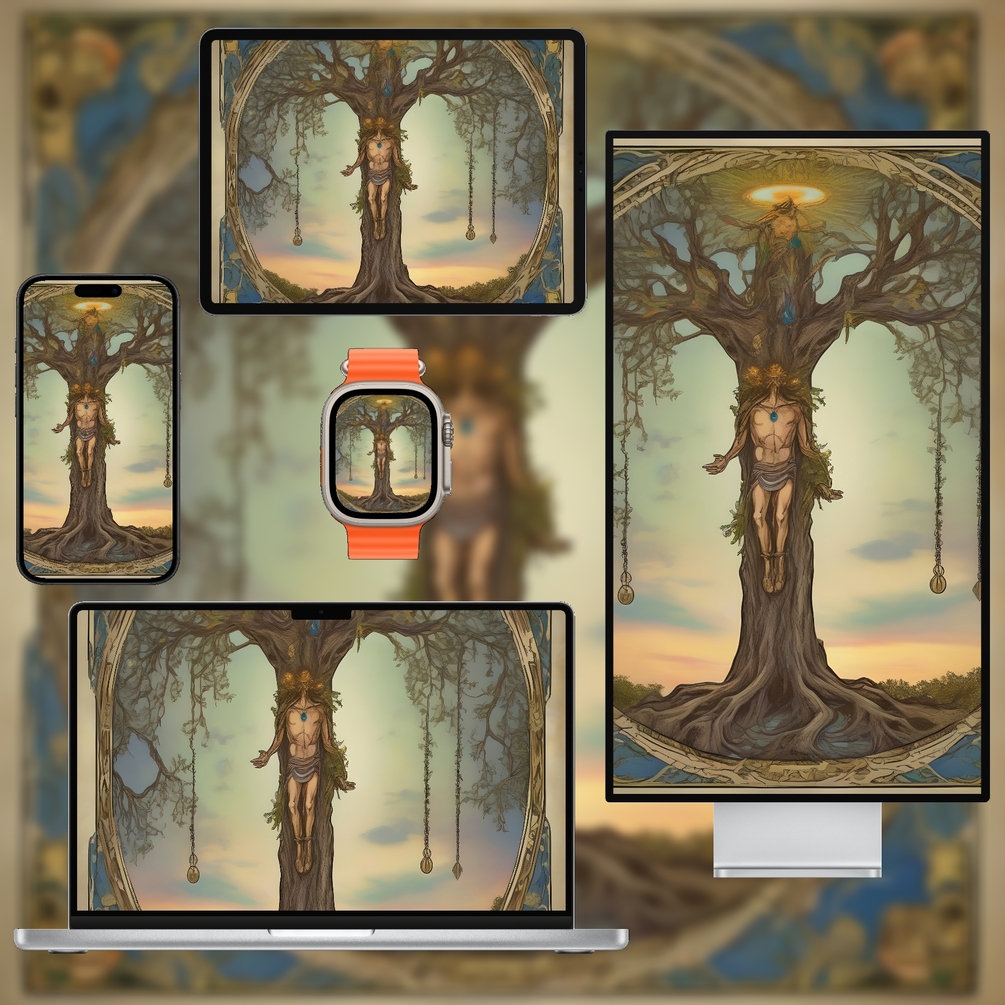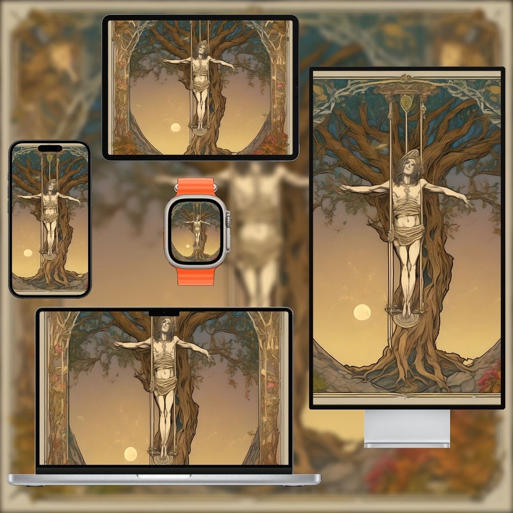 The Hanged Man (XII) Tarot Wallpaper Pack – Soft Minimal High-Res Set